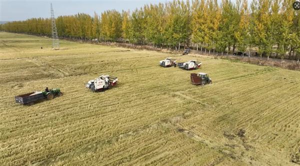 稻田里,多台大型收割机来回穿梭,发出阵阵轰鸣声,割稻、脱粒、装车等收割工序一气呵成,大粒饱满的稻谷尽收囊中,田间地头呈现一派丰收的喜人景象。 海林镇新合村村民李明哲:今年我种了1500多亩水稻,今年的天气非常好,长势也好,预计亩产1200斤左右,又是丰收的一年。